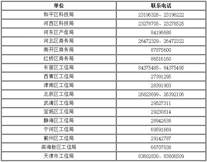 为解决省际之间(不包括防范区、管控区、封控区)应急物资运输问题,进一步落实《关于印发天津市疫情防控期间应急物资运输保障工作方案的通知》(津新冠防指〔2022〕10号)要求,方便工业企业向各区工业和信息化主管部门申请通行证,现将联系方式公布如下: