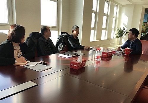 赵峰副巡视员(右二)与刘永远董事长(右一)深入交流