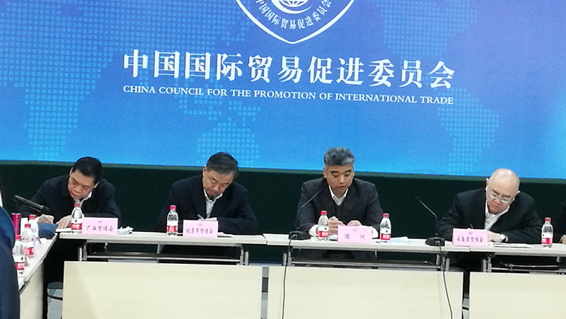 中国贸促会陈洲副会长(右二)就贸易投资工作讲话