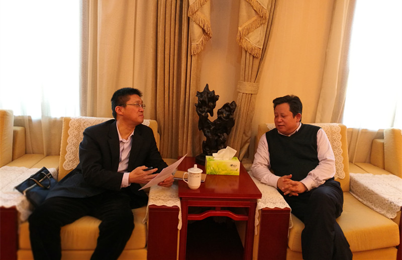 段益民副会长(左一)与张连祥副主任(右一)进行交流