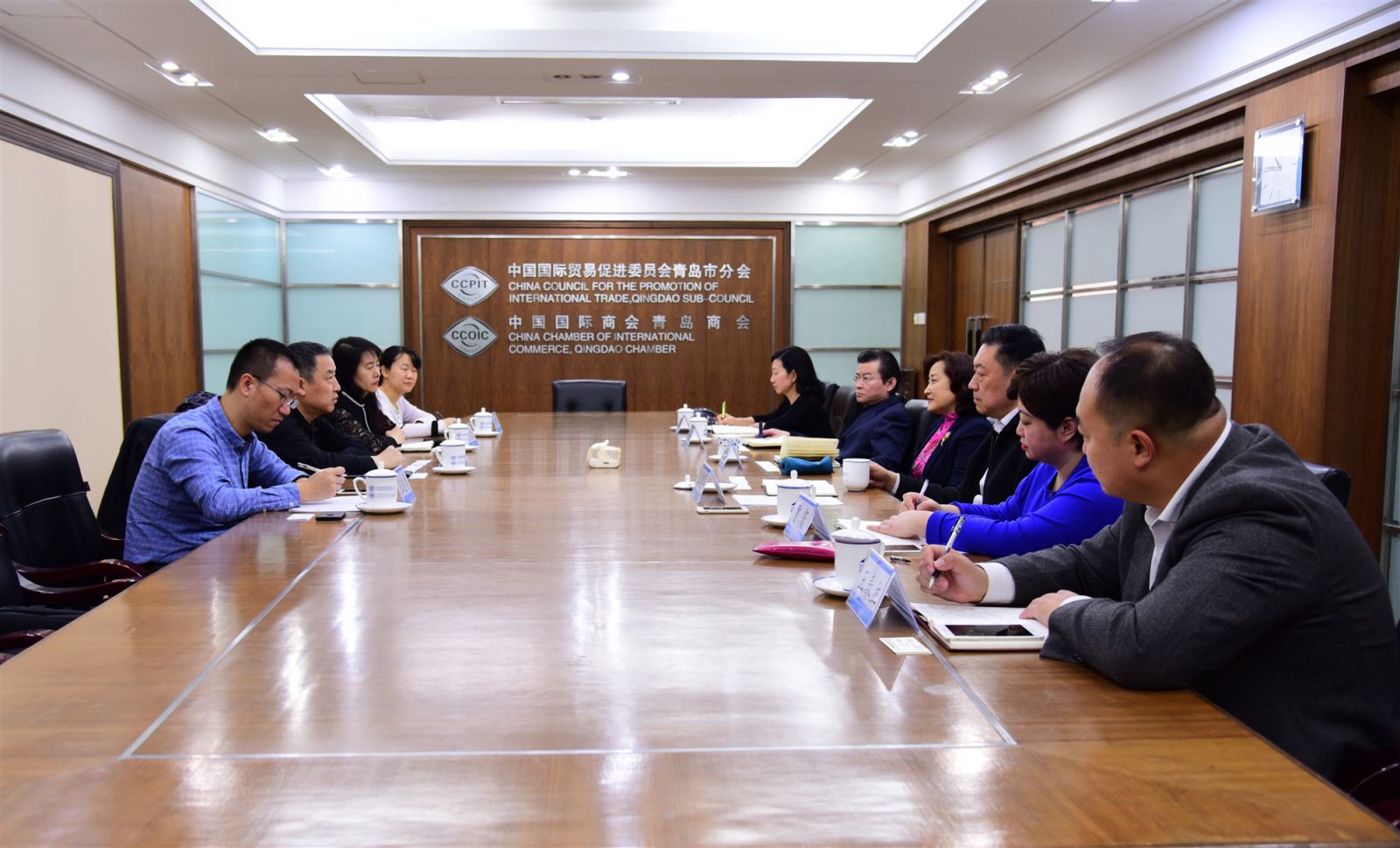 赵峰副巡视员与青岛市贸促会初连玉会长、王建军副会长、阮路宁秘书长及相关部门负责人进行了座谈,学习了解青岛市贸促会在新形势下推动该市对外开放工作的先进经验与做法,并围绕贸促工作新理念,就进一步做好做实国际联络、贸易投资促进、对外宣传、信息报送、系统建设等工作进行了深入探讨。双方均表示要在两会传统友谊基础上,互相借鉴,共享资源,广泛加强合作。