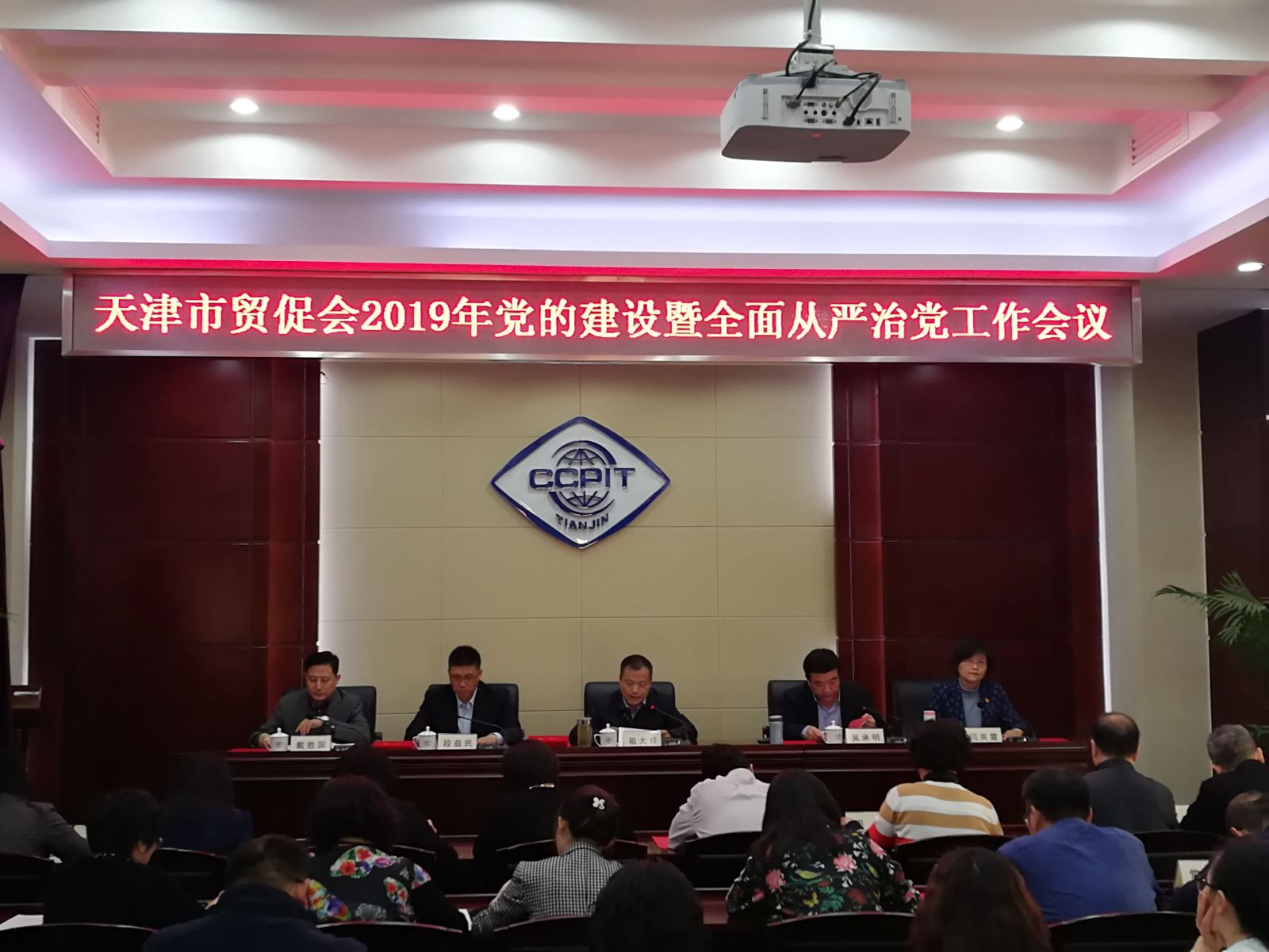 3月29日下午,天津市贸促会召开2019年度党的建设暨全面从严治党工作会议,机关及会属中心全体干部职工参会。