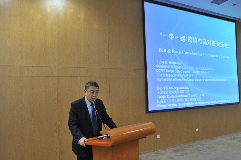 赵峰在致辞中表示,作为贸易新业态,跨境电商在天津得到了迅速发展,天津市贸促会将积极为企业搭建与“一带一路”工商界互动平台,促进我市跨境电商行业的国际交流与合作。