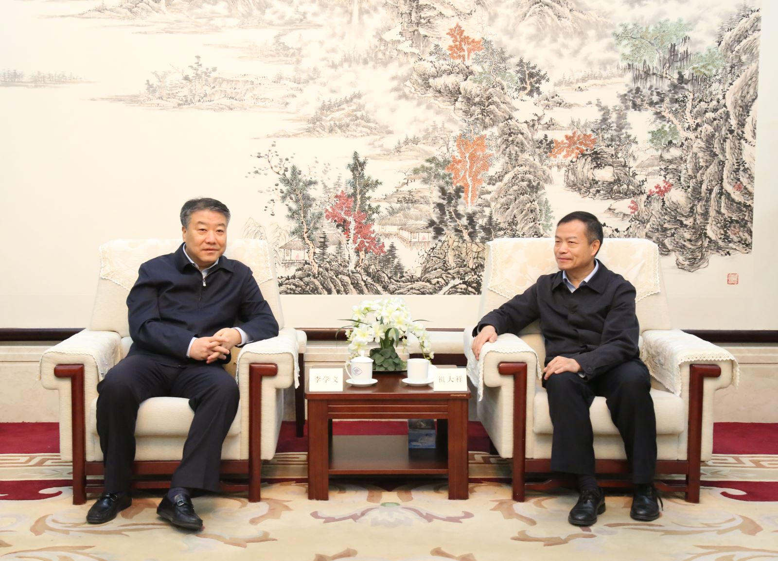 祖大祥会长(右一)与李学义书记(左一)交谈