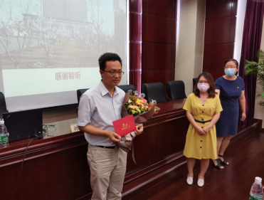 党课结束后,我会预备党员代表为刘主任献上了鲜花和贺卡,送上我会党员干部对抗疫英雄的崇敬和祝福。