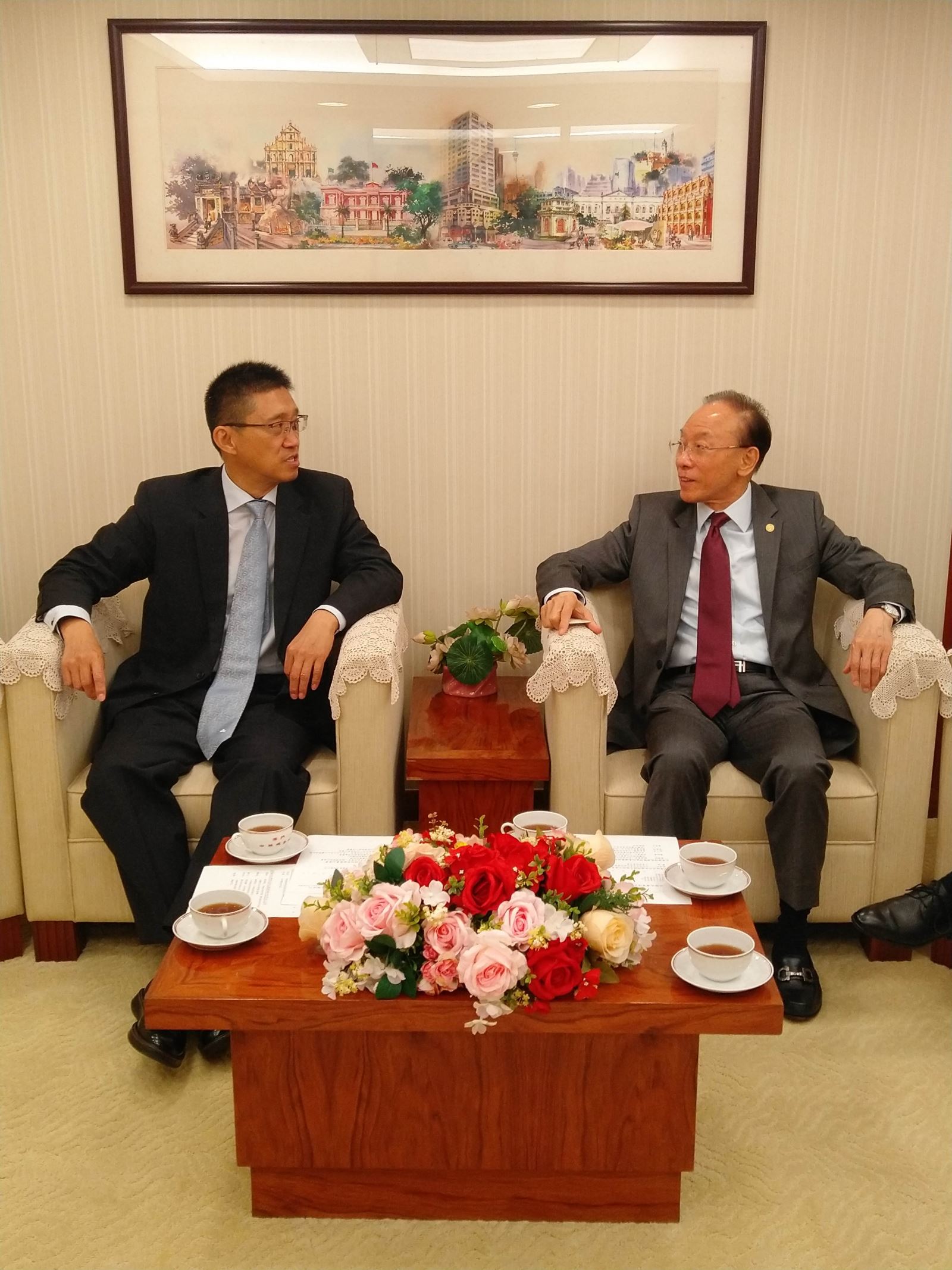在澳门期间,段益民副会长带队拜访了澳门中华总商会,与黄树森副理事长举行了会谈。