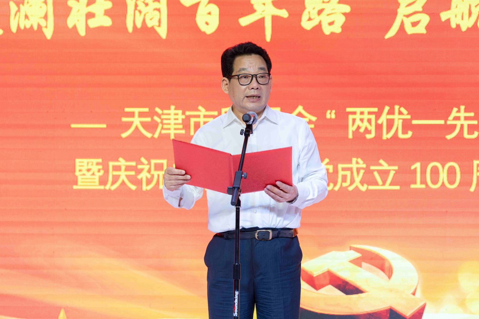 在雄壮的开场音乐中,姜德志同志首先带领全体党员重温入党誓词,回顾入党初心。他在讲话中指出,此次活动既是一次学习身边典型的表彰大会,也是一次向党的生日献礼的汇报演出,更是一次重温中国共产党历史的党性教育。希望大家始终坚定理想信念,践行入党誓言,以更加优异的成绩为党旗增光添彩。