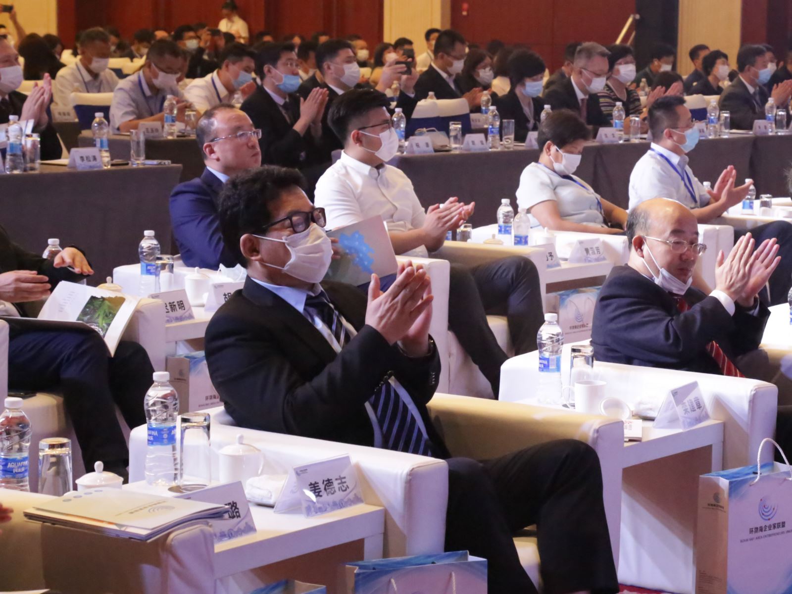 7月20日,环渤海企业家联盟揭牌仪式及“环渤海区域经济发展暨服务京津冀协同发展高峰论坛”在津举行。香港特别行政区行政长官林郑月娥视频致辞。中国贸促会党组书记、会长高燕,天津市委常委、统战部部长冀国强,中国工业经济联合会执行副会长兼秘书长熊梦出席并致辞。我会会长姜德志陪同参加。