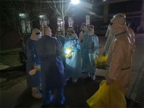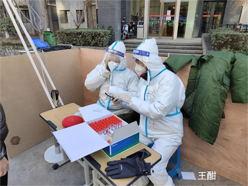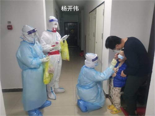 16日,根据工作安排,张志勇等4人赶赴辛庄镇,进入封控区执行隔离人员上门核酸检测任务,展开“敲门”行动。虽然进入最危险的“红区”,但他们毫无畏惧,充满斗志。做好二级防护后,2名医务人员和2名下沉干部组成一个战斗小组,开始逐层“扫楼”。