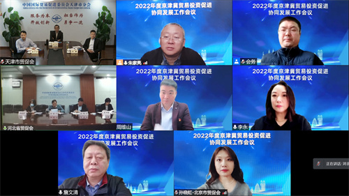 3月30日上午,2022年度京津冀贸易投资促进协同发展工作会议以视频会议形式召开。北京市贸促会副主任朱家亮、天津市贸促会副会长郭造林、河北省贸促会副会长索建杰出席会议并讲话,三地贸促会主责部门负责同志及相关工作人员共同参会。