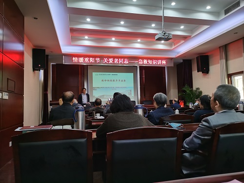 在传统佳节“重阳节”到来之际,会党组向离退休干部制发了一份热情洋溢的慰问信,同时于10月23日上午,我会特邀请抗疫劳模天津中医一附属医院急症部刘学政副主任为我会离退休和部分在职干部职工开展了“情暖重阳节 关爱老同志”--急救知识讲座。