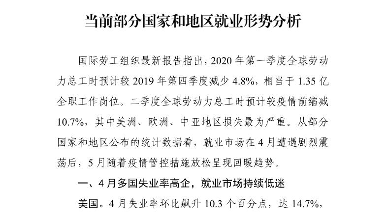 贸促工作参考——当前部分国家和地区就业形势分析