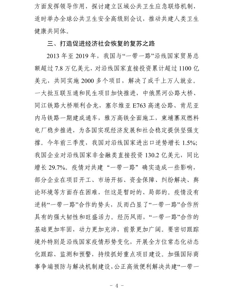 贸促工作参考——把“一带一路”打造成为合作之路、 健康之路、复苏之路、增长之路