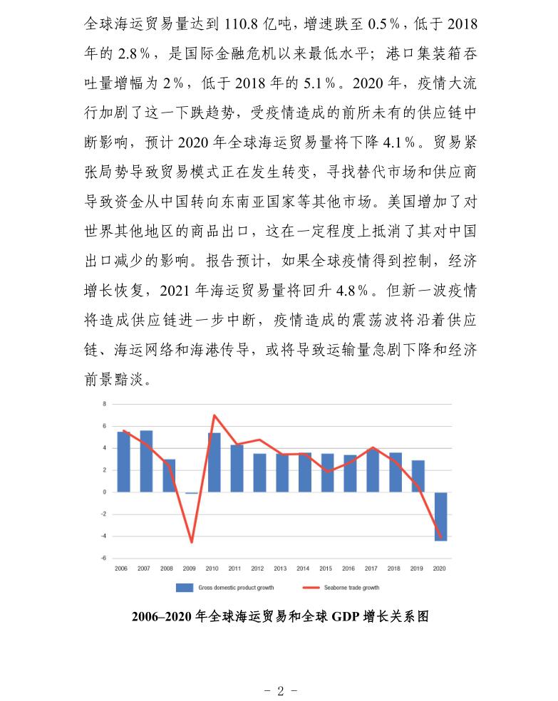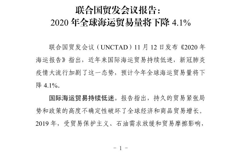 贸促工作参考——联合国贸发会议报告: 2020 年全球海运贸易量将下降 4.1%