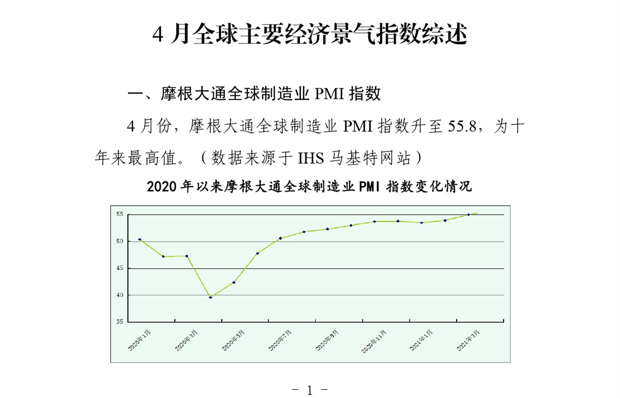 贸促工作参考——4 月全球主要经济景气指数综述