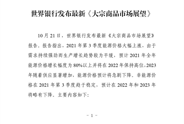贸促工作参考——世界银行发布最新《大宗商品市场展望》