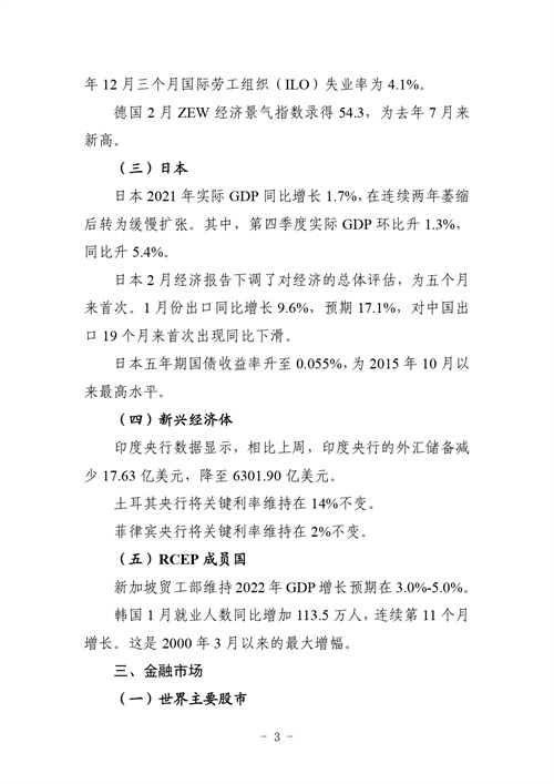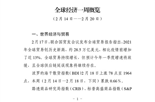 贸促工作参考——全球经济一周概览(2 月 14 日——2 月 20 日)