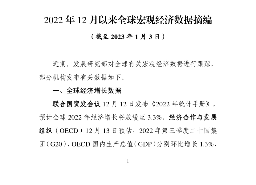 2022 年 12 月以来全球宏观经济数据摘编 (截至 2023 年 1 月 3 日)