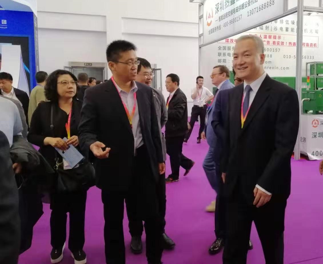 段益民副会长(左)向尚斌义副主席(右)介绍天津展区情况