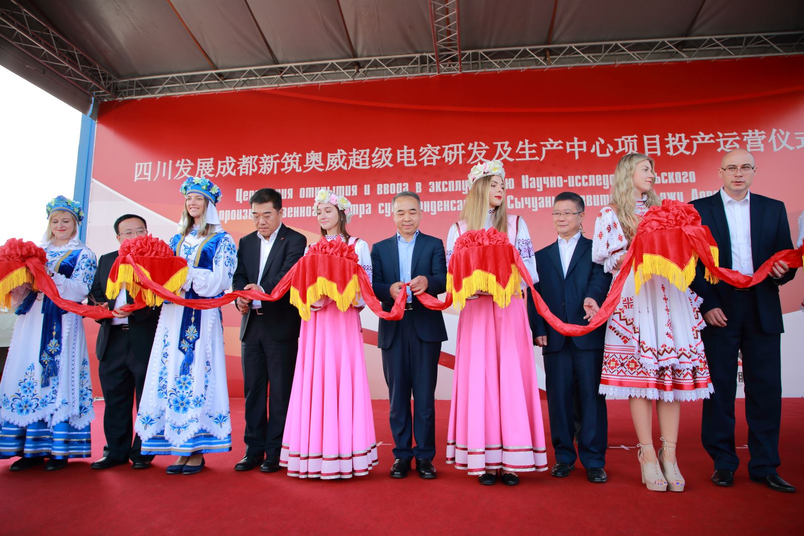 2018年8月29日下午,四川省委常委、成都市委书记范锐平、中华人民共和国驻白俄罗斯共和国特命全权大使崔启明、白俄罗斯经济部副部长马图谢维奇、中白工业园区管委会副主任伊戈尔、中白工业园区开发公司总经理李海欣、四川发展成都市新筑路桥机械股份有限公司董事长肖光辉等领导共同为四川发展成都新筑奥威超级电容研发及生产中心项目投产运营仪式剪彩。