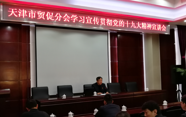 11月10日,天津市贸促分会召开学习宣传贯彻党的十九大精神宣讲会,我会全体干部职工集中学习聆听宣讲报告。