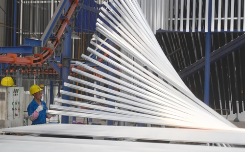 An employee works at an aluminium alloy plant in Wuxing district of Huzhou, Zhejiang province. [Photo/Xinhua]