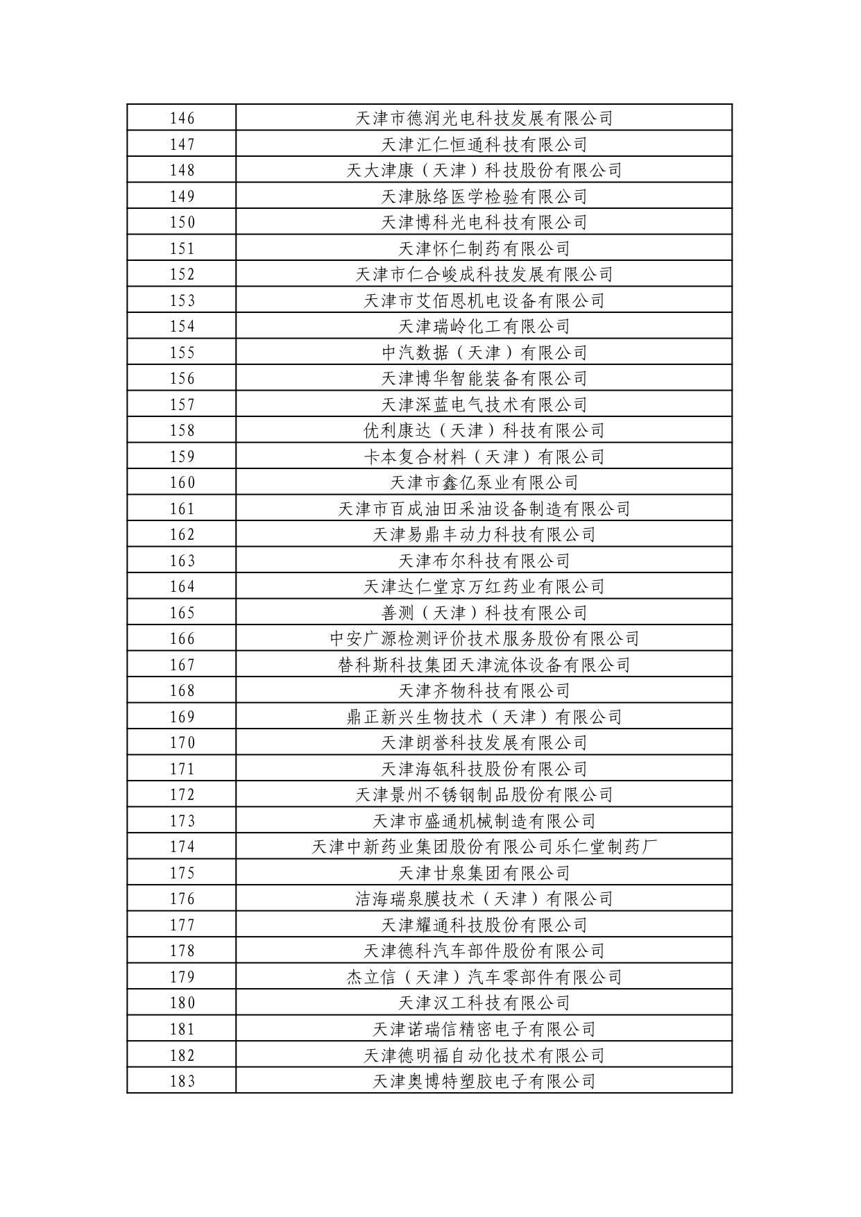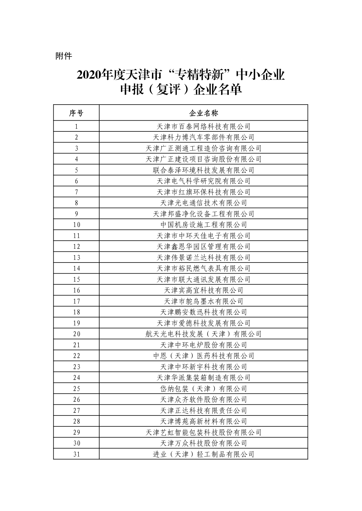 2020年度天津市“专精特新”中小企业 申报(复评)企业名单