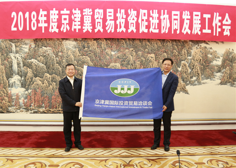 3月28日,天津市贸促会会长祖大祥赴河北省石家庄市出席“2018年度京津冀贸易投资促进协同发展工作会”。北京市贸促会主任张永明、副主任林彬,河北省贸促会会长魏存计、副会长侯剑,三地贸促系统及物流协会代表,河北省政府相关部门负责人共同参会。我会秘书长路楠、办公室和展览部负责同志陪同参加。