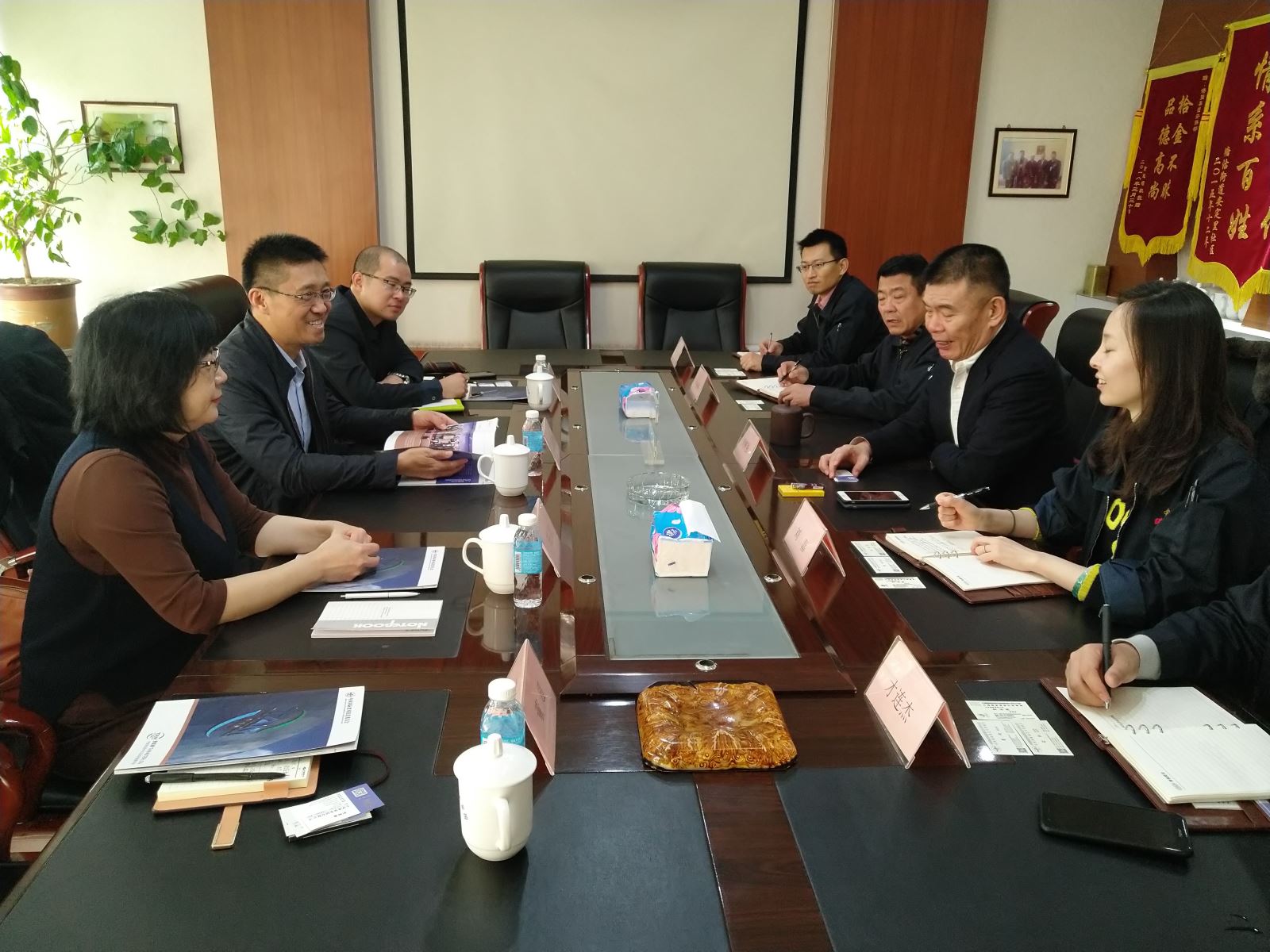 段益民副会长(左二)与刘树强总经理(右二)会谈