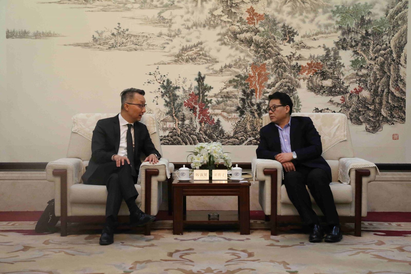 姜德志会长(右一)会见陈嘉贤首席代表(左一)