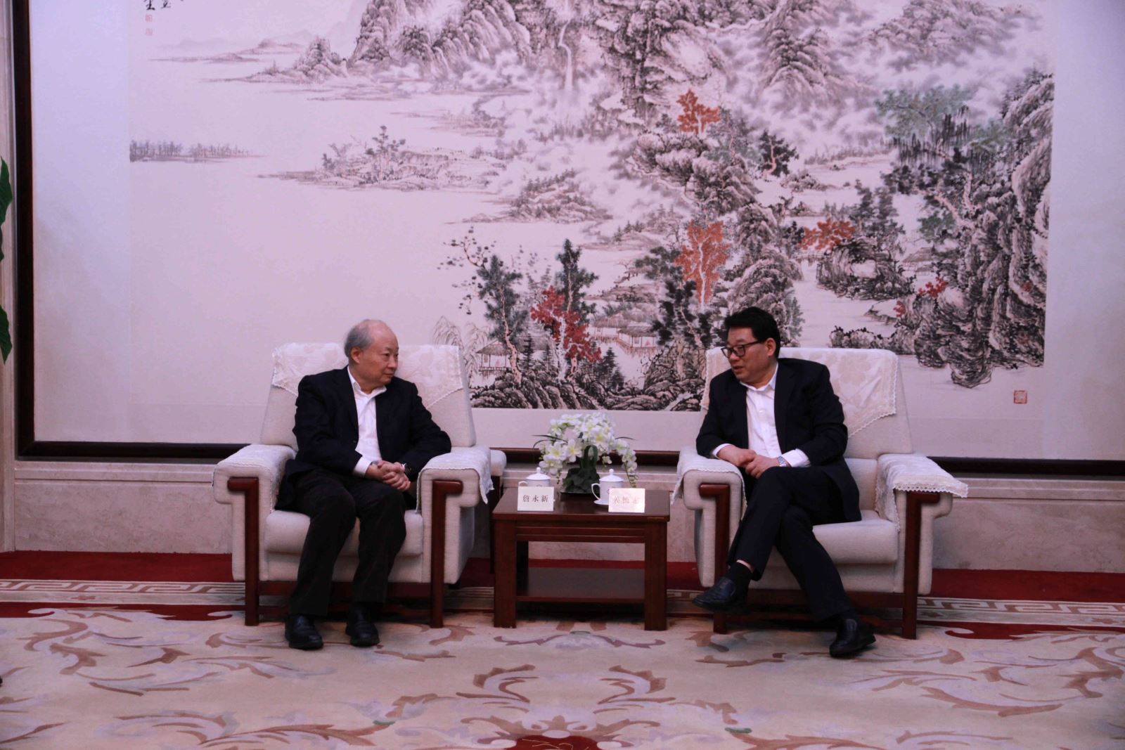 姜德志会长(右一)会见詹永新会长(左一)