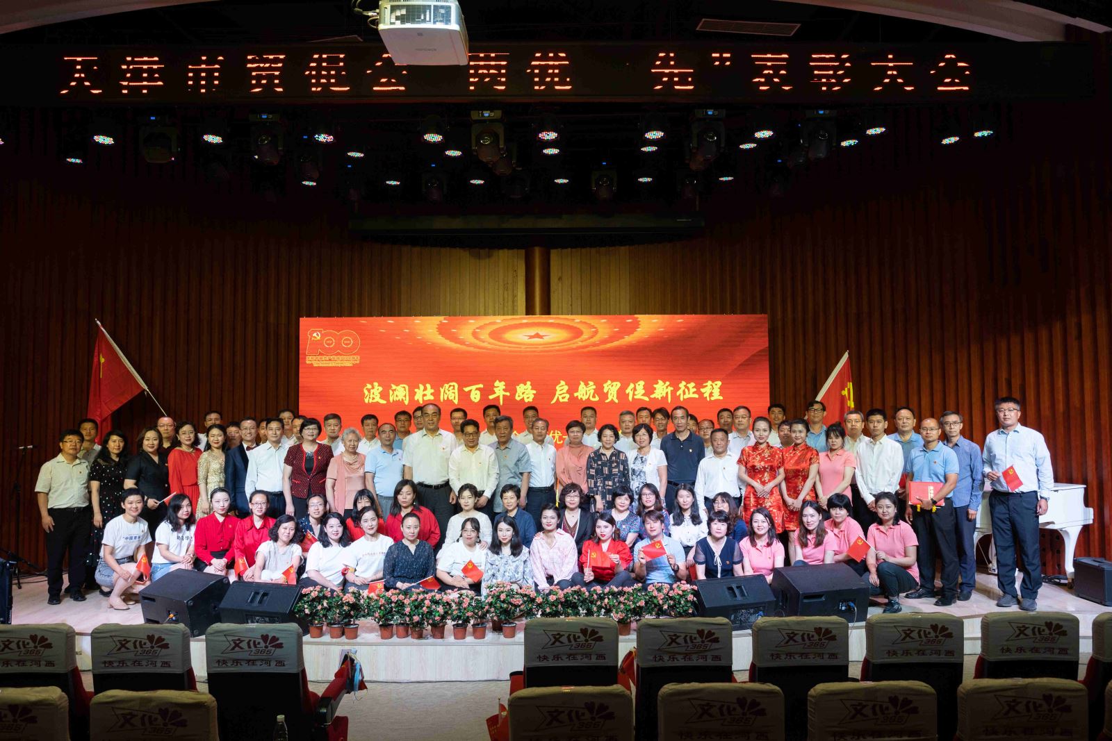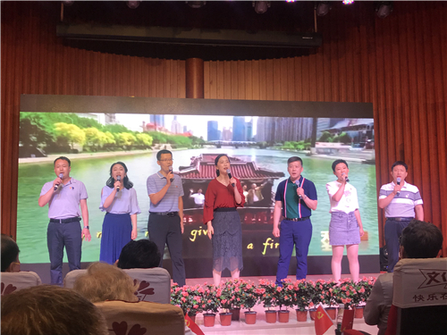 无论是青年朋友们轻松欢快、热情洋溢的曲目合唱,还是退役军人们铿锵有力、慷慨激昂的军歌联唱,无论是饱含深情、跌宕起伏的诗朗诵和讲演,还是催人泪下、发人深思的舞台剧和小品,市贸促会全体干部职工全员参与,用自编自导自演的文艺节目,为党的百年华诞送上诚挚祝福。19个文艺节目回望了共产党人前赴后继投身革命建设改革的光荣岁月,讴歌了中国共产党为实现国家富强和民族复兴作出的伟大贡献,抒发了人民爱党爱国爱社会主义的深厚情怀,表达了天津贸促人坚定不移“听党话、感党恩、跟党走”的拳拳之心。文艺展演在全场齐声高唱《没有共产党就没有新中国》中落下帷幕。