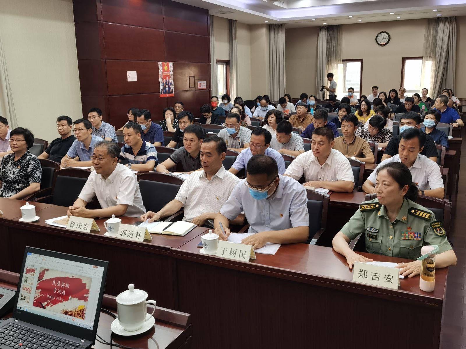 作为建党百年系列活动之一,7月27日市贸促会组织开展“发扬革命传统 传承红色基因”庆八一主题活动,邀请革命先烈吉鸿昌将军外孙女、天津市政协委员、驻津某部队郑吉安大校,以《民族英雄--吉鸿昌》为题,用自身耳濡目染的家教和独特感受,讲述了外祖父吉鸿昌将军在国难当头、救亡图存的危急时刻英勇抗日的感人事迹和革命历程,既生动再现了吉鸿昌将军光辉而短暂的一生,又充分印证了他不怕牺牲、英勇斗争,对党忠诚、不负人民的建党初心。