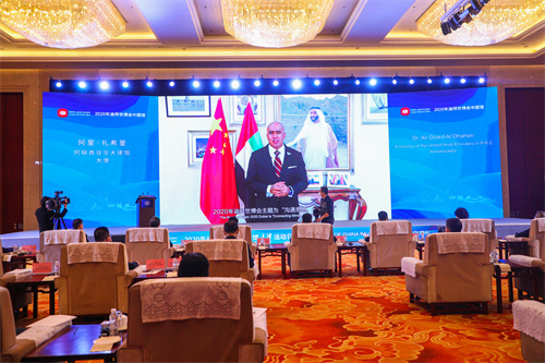 迪拜世博会中国馆政府总代表、中国贸促会副会长张慎峰在线致辞