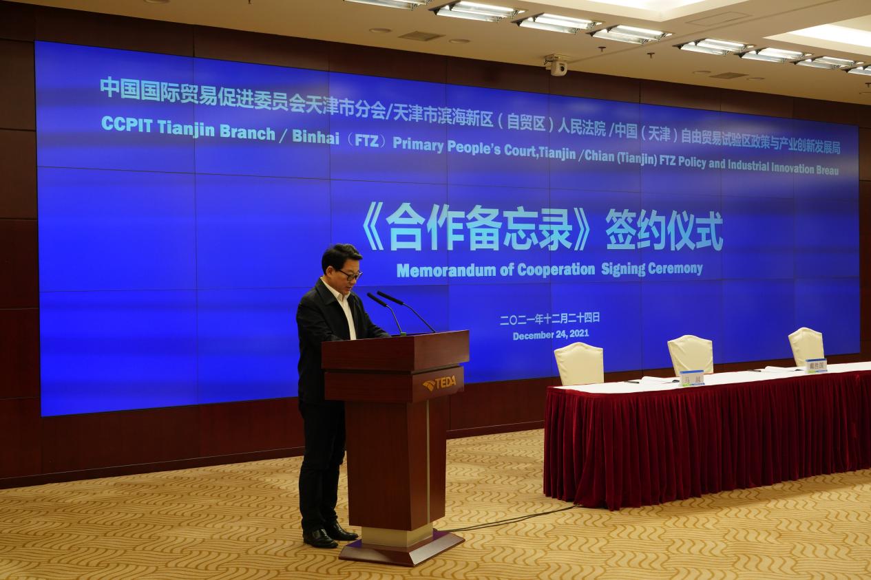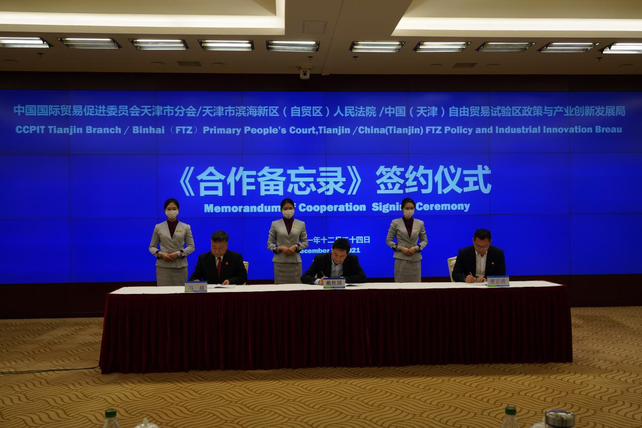 我会与天津市滨海新区(自贸区)人民法院和中国(天津)自由贸易试验区政策与产业创新发展局共同签署《合作备忘录》