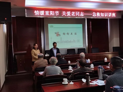 在传统佳节“重阳节”到来之际,会党组向离退休干部制发了一份热情洋溢的慰问信,同时于10月23日上午,我会特邀请抗疫劳模天津中医一附属医院急症部刘学政副主任为我会离退休和部分在职干部职工开展了“情暖重阳节 关爱老同志”--急救知识讲座。