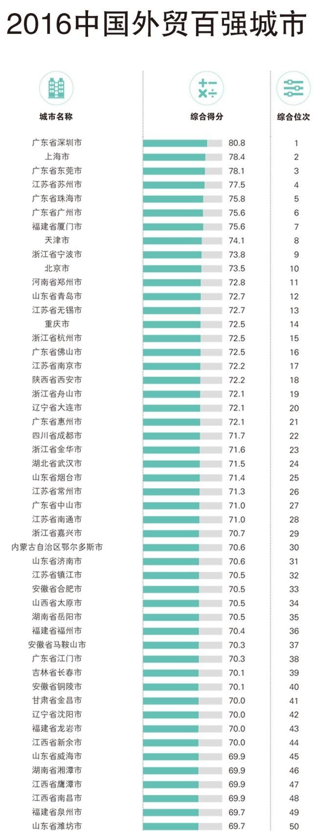 2016中国外贸百强城市完整名单