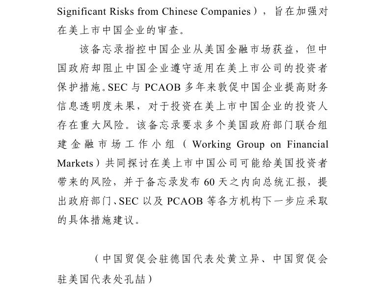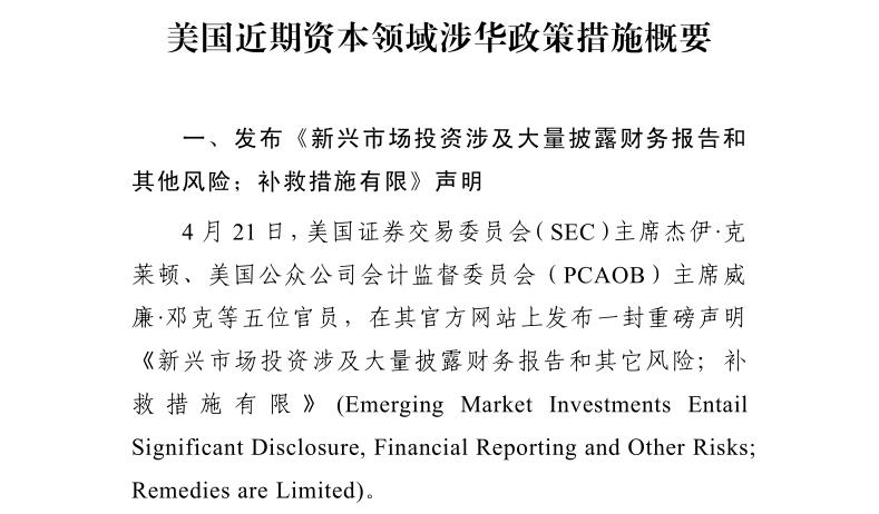 贸促工作参考——美国近期资本领域涉华政策措施概要
