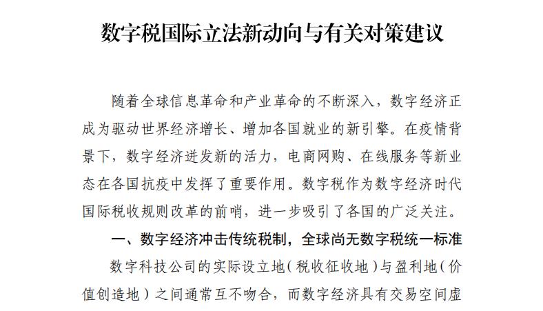 贸促工作参考——数字税国际立法新动向与有关对策建议