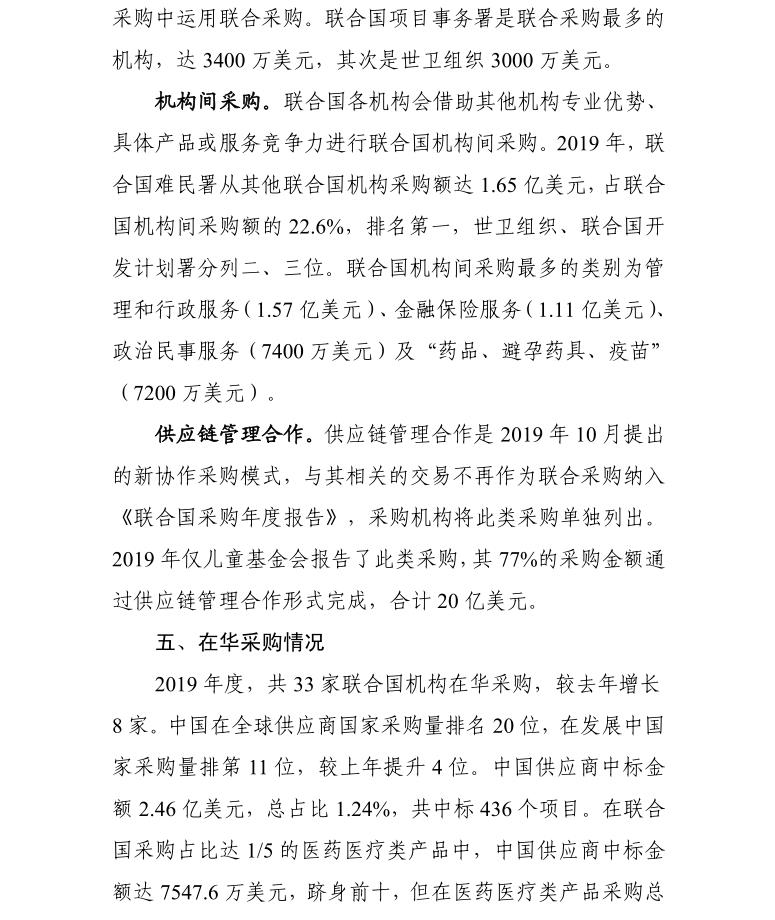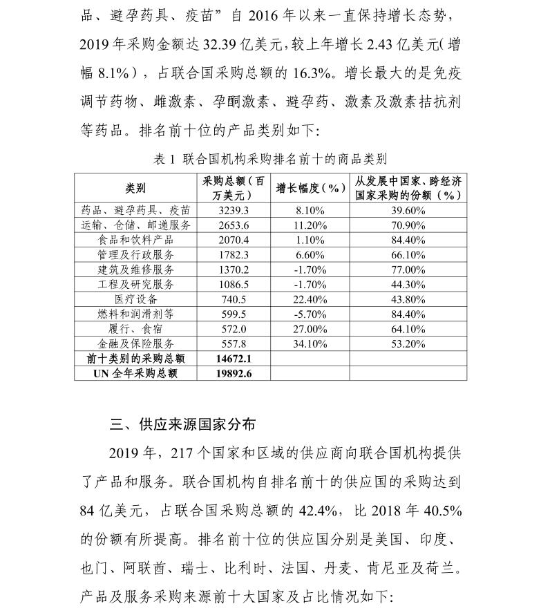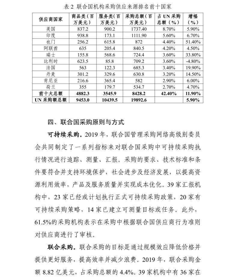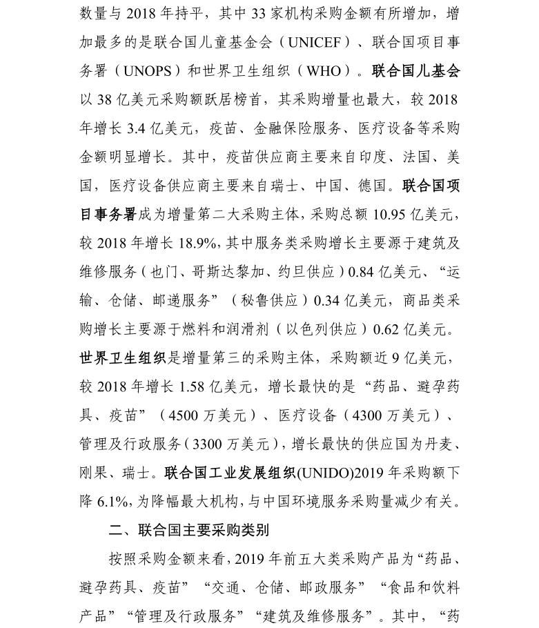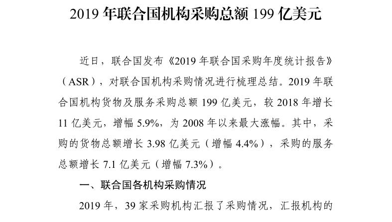 贸促工作参考——2019 年联合国机构采购总额 199 亿美元