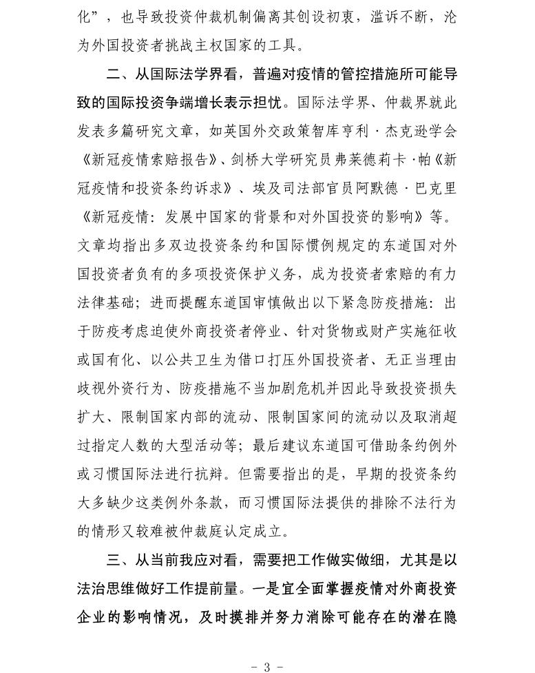 贸促工作参考——疫情导致我面临的国际投资仲裁风险加大