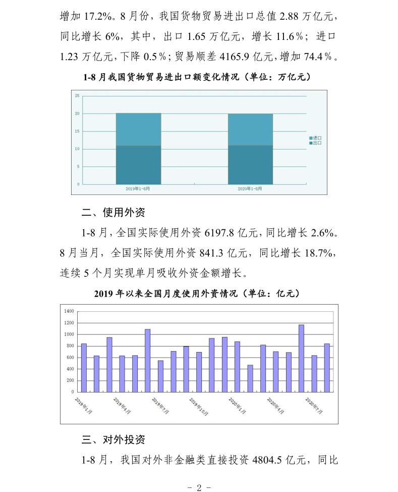 贸促工作参考——八月国内经贸数据综述