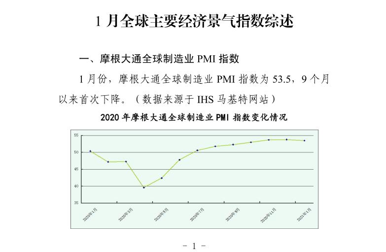 贸促工作参考——1 月全球主要经济景气指数综述