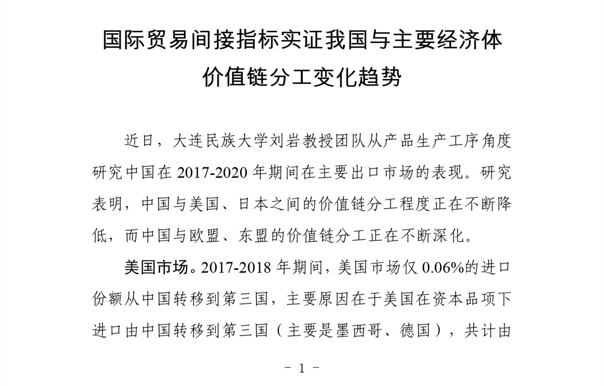 贸促工作参考——国际贸易间接指标实证我国与主要经济体 价值链分工变化趋势