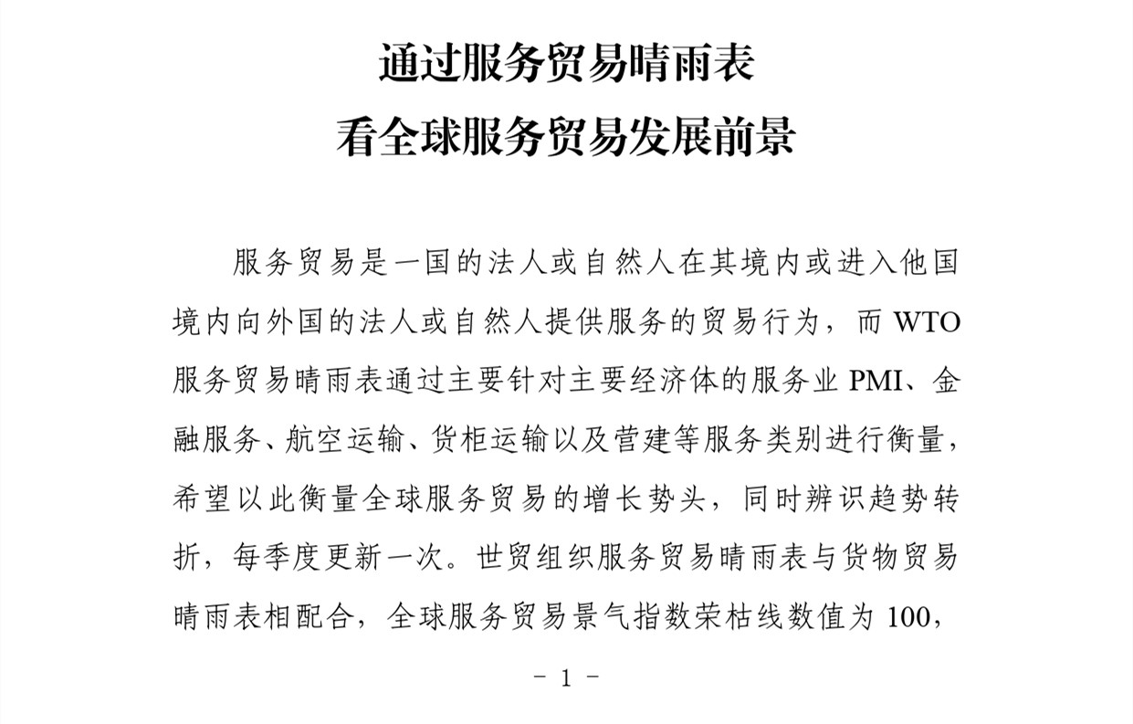 贸促工作参考——通过服务贸易晴雨表 看全球服务贸易发展前景