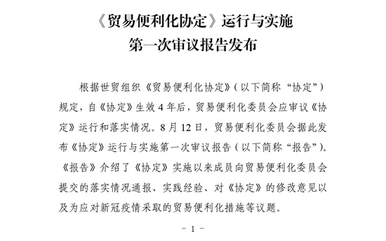 贸促工作参考——《贸易便利化协定》运行与实施第一次审议报告发布
