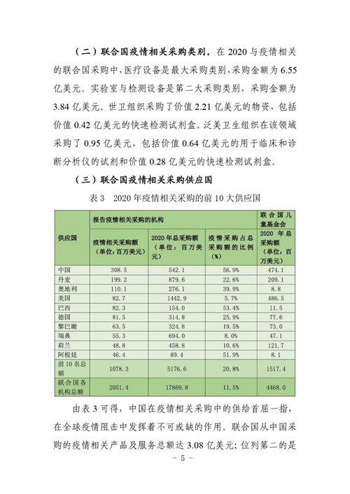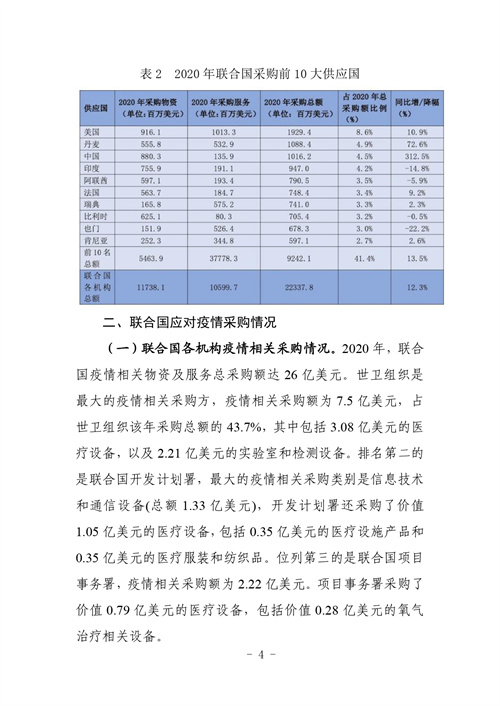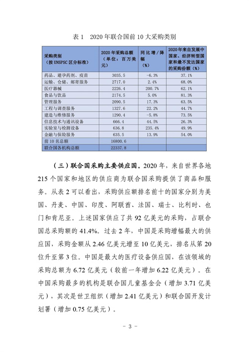 贸促工作参考——联合国项目事务署发布年度采购统计报告 中国跃居采购供应国第三位