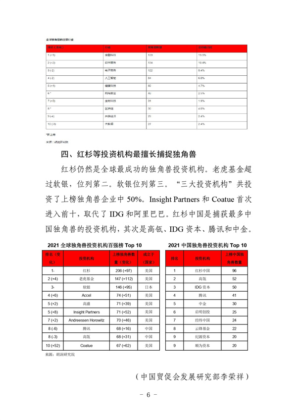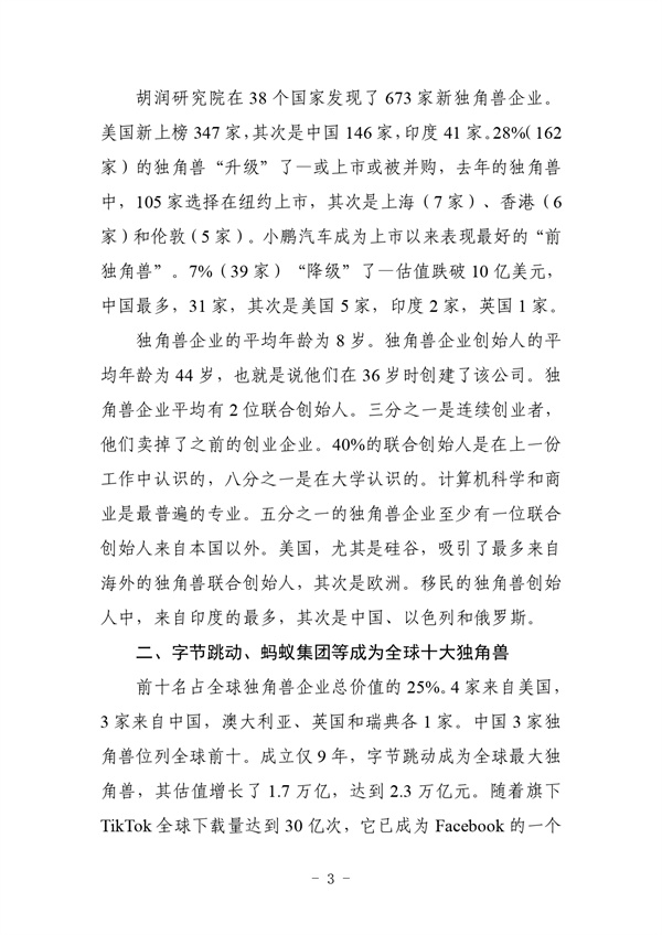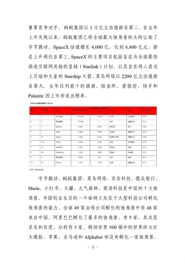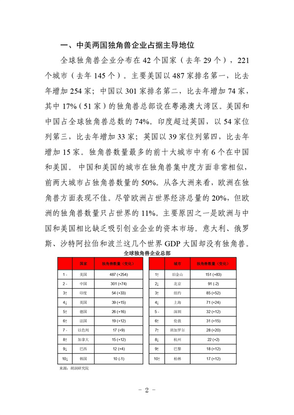 贸促工作参考——《2021 全球独角兽榜》:中国独角兽企业 数量全球第二