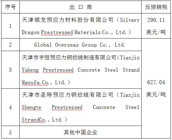 2016年7月18日,巴西工业外贸服务部在官方公报上发布外贸秘书处2016年第43号决议,应巴西国内企业Belgo Bekaert Arames Ltda.于2016年4月28日提交的申请,对原产自中国的高碳钢丝绳启动反倾销立案调查,倾销调查期为2015年1月至12月,损害调查期为2011年1月至2015年12月。2016年11月18日,巴西工业外贸服务部在官方公报上发布外贸秘书处2016年第68号决议,对原产自中国的高碳钢丝绳作出反倾销肯定性初裁,裁定中国涉案企业倾销幅度为118.7%。2016年12月23日,巴西外贸委员会执行管理委员会在官方公报上发布2016年第128号决议,对中国涉案企业征收351.3美元/吨~562.7美元/吨的临时反倾销税,有效期6个月。
